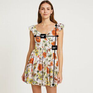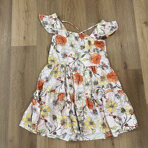 Adorable floral off-shoulder summer dress featuring a vibrant print with orange, yellow, and white flowers. The lightweight fabric and tiered skirt create a flowy, feminine silhouette that’s perfect for warm weather. Adjustable shoulder straps and ruffled sleeves add a playful touch. Great for casual outings, vacations, or brunch dates. In excellent brand new condition and ready to wear. From a smoke-free home.