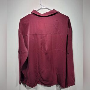 Beautiful top. Faux pockets. 3/4 roll tab sleeve. V neckline. Made with all polyester materials. Lightweight and flowy. Feels so silky. Tag says size large.