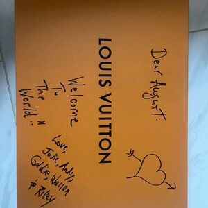 @amberhb1988 there is no writing on the blanket, just the LV box from the person who originally gave it to me (don’t know why they wrote on the box and not a card!).