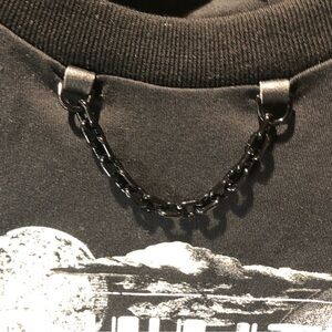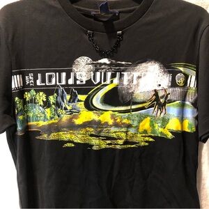NWT Louis Vuitton Mens black tee graphic print black chain neck detail size S