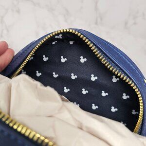 Here's a Disney style worth wishing for! This Loungefly mini backpack features an allover starry night sky print, decorated with Mickey Mouse-shaped clouds and constellations for a dreamy touch to all of your travels. Also features gold-toned hardware, an enamel brand badge, two side pockets, adjustable shoulder straps, and a Mickey Mouse logo interior lining pattern.