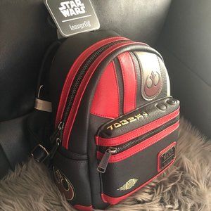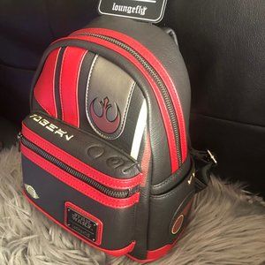 NWT Loungefly Disney Star Wars Jedi Rebel Pilot Poe Dameron Cosplay Mini Backpack. Brand new w/ tags BNWT / NWT / BNT. I'm open to reasonable offers. Non-smoking home. Stored & shipped w/ care.