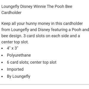 New Loungefly Disney Winnie-the-Pooh honey bee pot cardholder. See pictures for more details and measurements.