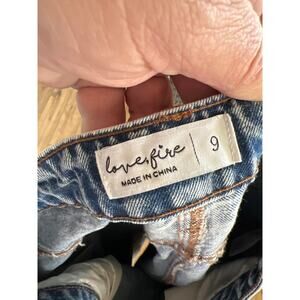 New with tags Love, Fire size 9 stone washed denim cargo midi skirt. Large slit in the front. Waist is 14” across and it is 36” long.