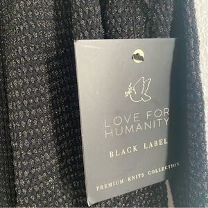 This stylish cardigan by Love for Humanity is a must-have for any fashion-forward woman. The black knit fabric is accented with metallic gold threads to give it a touch of glamour. The cardigan features an open front, long sleeves, and a size of Small. Hand wash only is recommended to keep this cardigan looking its best. Made from polyester, it is both comfortable and durable. This cardigan is perfect for any occasion and will make a great addition to your wardrobe. Order now and add a touch of elegance to your outfits.