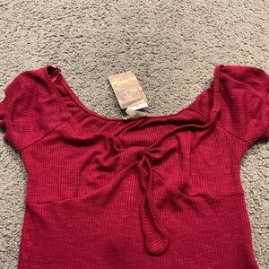 NWT Love J Twist Cropped Burgundy Red T-Shirt Peasant Top Y2K Elena Gilbert sz L