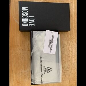 NWT Love Moschino Authentic Metallic Hearts Wallet Black And Silver