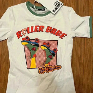 NWT Love Moschino Roller Babe Ringer Tee Shirt White 4