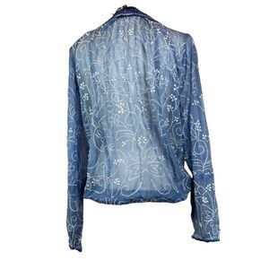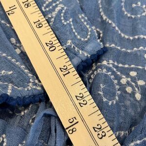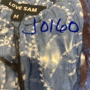 NWT Love Sam Blue Sail Embroidered and Crocheted Boho Top with Tassels Size Medium. NEW. See photos for details and measurements. Elastic waist with tassels. Breezy sheer blue fabric with pretty white embroidery throughout. Crochet details on front with covered buttons. So pretty and feminine. Great for date night with jeans or a flowy skirt, vacation, beach, cruise wear, festival, hipster, romantic