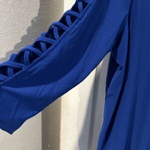 NWT “Love Scarlet “ Royal Blue Top with 3/4” Sleeves With Criss Cross Design