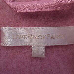 New with tags Love Shack Fancy Floret Coat In Pink.Gorgeous wool coat,Fully lined,Cute bow buttons,seperate tie included for waist.This one does not have appliques at collar.Never worn,Size Large,Smoke and pet free.