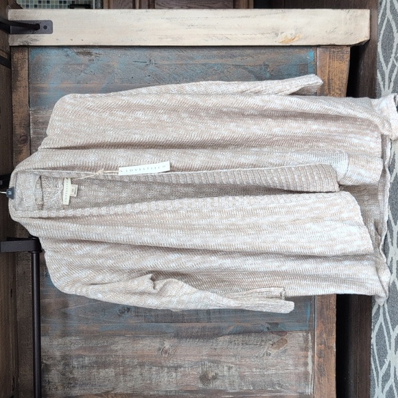 NWT Love Stitch Knitted Draped Lapel Open Cardigan in Tan / White - One Size