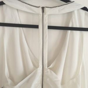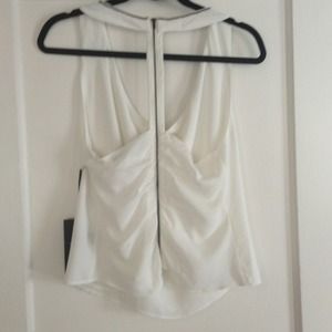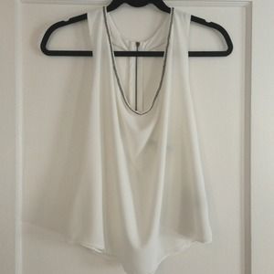 Soft and flowy fabric. Racer back style with cute zipper along the back. Chain detail at neckline.