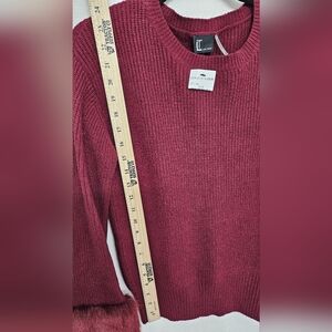 NWT Love Token Women's Sweater Wine Faux Fur Cuff Knit Pullover Size Small