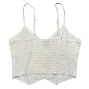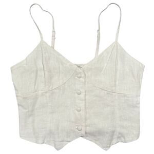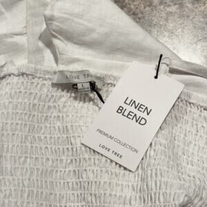 NWT Love Tree Crop Top Linen Boho Minimalist Cottage Coastal Button White Large