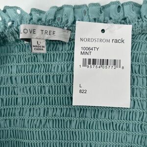 NWT Love Tree Mint Puff Sleeve Crop Off The Shoulder Top Size Large Women’s