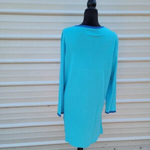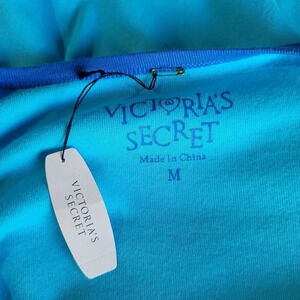 NWT Love VICTORIA'S SECRET COTTON LONG SLEEVE NIGHTGOWN Rainbow Aqua Blue M
