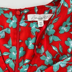 NWT: Love, Whit: Twist Front Satin Top, Red and Teal crop top, XS