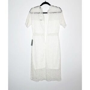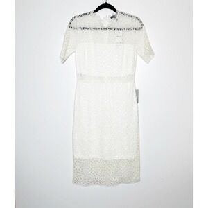 NWT Love X Design Lace Sheer Panel Knee Length Dress Gardenia White Women Size M