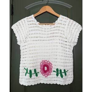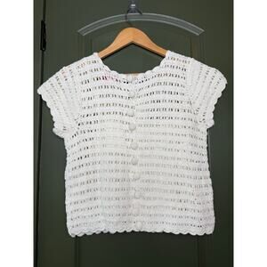 NWT Love the Label Multi Ivory Leighton Crochet Scallop Floral Top White Small