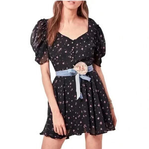NWT LoveShackFancy Cora Floral Black 100% Silk Mini Dress Size: XS