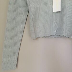 NWT LoveShackFancy Martti Stretch Pointelle Cardigan Eau De Nil Green | XS