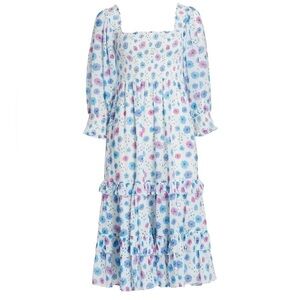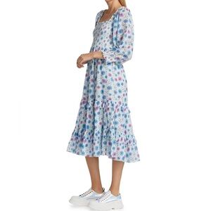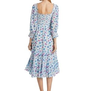LoveShackFancy's Miri midi-dress is designed with a delicate floral print. Made of cotton, this style features smocked accents, a tiered ruffle-trimmed skirt, and a front slit.