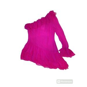 NWT LoveShackFancy NWT Darling One Shoulder Lined Mini Dress 10 Fuschia Pink
