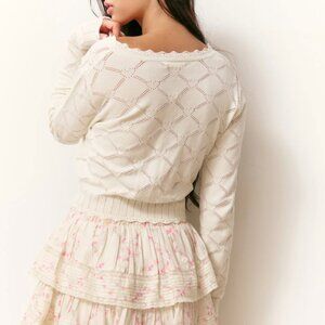NWT LoveShackFancy Petra Knit Heart Argyle Cardigan Parchment Cream Ivory