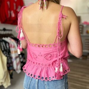 NWT LoveShackFancy Pink Biltmore Butterfly Embroidered Women's Top