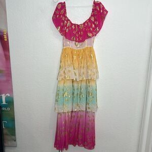 NWT LoveShackFancy VYNNE Maxi off shoulder DRESS SURFER FUSCHIA LIGHT Size: 8