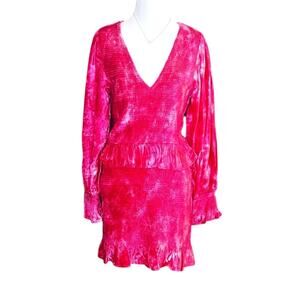 The Evan Dress commands attention in crushed velvet. This fitted minidress is smocked from its v-neck to its waist and bottom flounces. Long puffed sleeves are shirred at top and descend to smocked panels and a final flare.