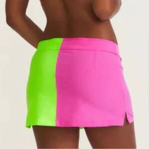 LoveShackFancy X Hurley Solid Blocked Boardie Skirt neon pink green swimsuit size XS