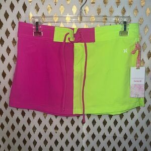 NWT LoveShackFancy X Hurley Solid Blocked Boardie Skirt neon pink green swimsuit