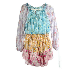 NWT LoveShackFancy popover silk mini dress rainbow cloud Gorgeous Floral Small