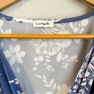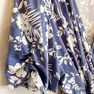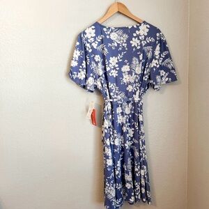 NWT, Loveappella Printed Short Sleeve Wrap Dress in Denim& Ivory, Size 1X