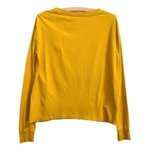 Mustard yellow color. Mineral Yellow. Round neck. Long sleeves. Graphic T-shirt.