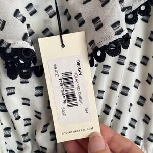 NWT Lover the Label white and black polka dot tiered ruffle midi dress sz 2
