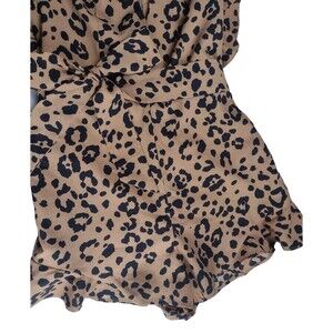 NWT Lovers And Friends Jill Romper Belted Animal Print V Neck Ruffle Sleeve