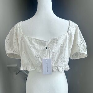 NWT Lovers + Friends Boho Eyelet Cropped White Leah Top Size XL