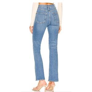 Elevate your denim collection with these Lovers & Friends Greyson Ultra High Rise Slim Boot Jeans. Crafted from the brand’s sustainable collection, they feature recycled materials, reused water, and a reduced-chemical process. The ultra high rise waist offers a flattering fit, while the slim boot cut gives a timeless silhouette perfect for pairing with heels, sneakers, or boots. Classic medium wash with subtle fading makes these jeans a versatile wardrobe staple. Designed in Los Angeles, these jeans combine effortless style with eco-conscious craftsmanship. Size 24, brand new with tags.