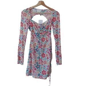 NWT Lovers + Friends Hello Daisy Mini Dress Womens Small Floral Mesh Long Sleeve