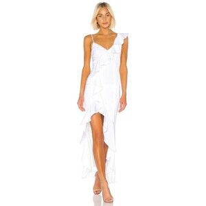 NWT Lovers + Friends Interstellar Gown Asymmetric Ruffled Maxi Dress White Small