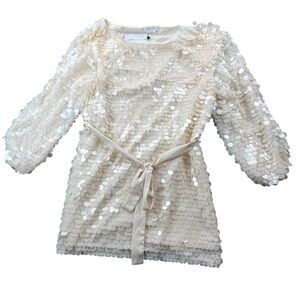 NWT Lovers & Friends Micah Shell Beige Round Sequence Mini Dress In Size L