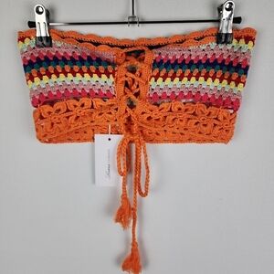 NWT Lovers + Friends Over The Rainbow Crochet Crop Top Size Small