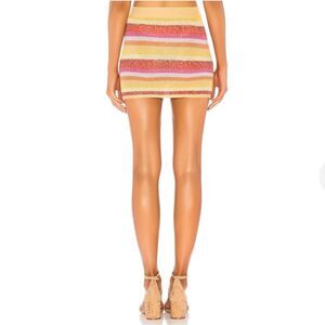 NWT no flaws. Current season but sold out! GIMME ALL THE DEETS • Sun-filled days call for the bold striping and mini hem of the Lovers + Friends Sunset Sweater Skirt. Perfectly flecked with metallic threading, the form fitting silhouette sits high on waist, bringing all eyes to your best assets. • 60% cotton 20% lurex 15% acrylic 5% viscose • Hand wash cold • Unlined • Knit fabric with metallic thread accents • Elasticized waist • Item not sold as a set • Skirt measures approx 14" in length • Style No. LOVF-WQ304 • Manufacturer Style No. LFK55 U18 Please see pictures for measurements. Smoke free home. Perfect for running to and fro to date night- versatile with sneakers to heels.