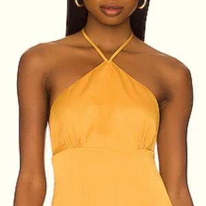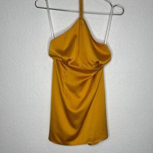 NWT Lovers & Friends TEAGAN MINI DRESS Mustard Yellow Small Satin Revolve