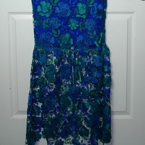 NWT Lovers + Friends Teagan Gown Lace Floral Blue Green Strapless Mermaid Sz LG