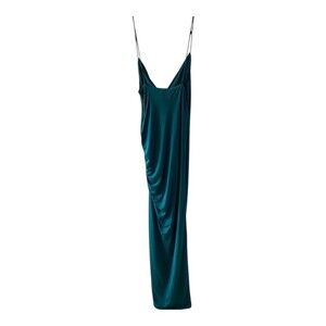 Lovers + Friends Teal Spaghetti Straps Ruched Side Seam Slit Evening Gown Dress Womens S