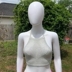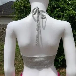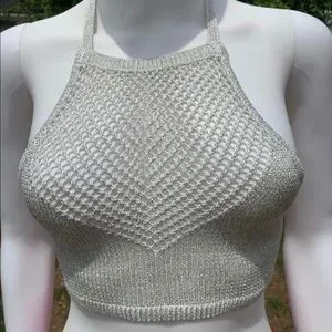 💋NWT Lovers + friends silver metallic halter bikini swim top